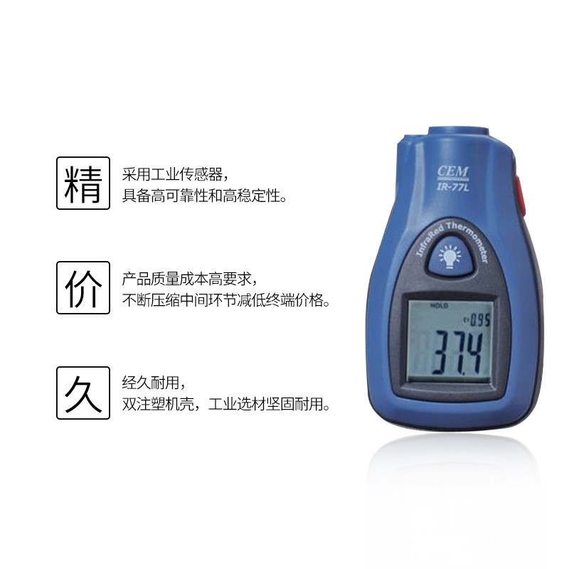 產(chǎn)品特點(diǎn)】 內(nèi)置式激光瞄準(zhǔn) ·距離目標(biāo)比6:1(能夠在一步外測量2米內(nèi)區(qū)域的溫度) ·便攜式易使用:將儀器控制在測量區(qū)域的兩步內(nèi),按下按鈕就可以完成測溫 ·帶背光源液晶顯示屏,℃/℉選擇按鍵 ·自動(dòng)數(shù)據(jù)保持,自動(dòng)關(guān)機(jī) ·電池低電能顯示 ·適用于:交流電源和制熱系統(tǒng),對(duì)冰箱/洗碗機(jī)/制冰機(jī)和烤箱等電器進(jìn)行溫度監(jiān)控,確保正確的烹飪/烘烤及儲(chǔ)藏溫度