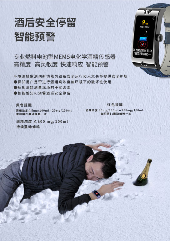 CEM路卡(ROCAR)智能酒精檢測(cè)手表健康飲酒喝酒預(yù)警酒精測(cè)試大屏幕心率血氧