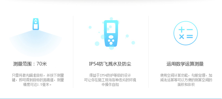 LDM-70為CEM自主設(shè)計、研發(fā)和制造的工業(yè)級遠(yuǎn)距離手持式激光測距儀,使用簡單安全,僅需單人操作無需借助其他工具,即使在非??量痰臏y量環(huán)境中也能輕松應(yīng)對。65米/70米能滿足更多工業(yè)與建筑行業(yè)的需求。 1、面積體積的計算功能; 2、運用勾股定理間接測量; 3、加減功能; 4、連續(xù)測量功能; 5、最大與最小距離跟蹤; 6、背光顯示與多行顯示; 7、蜂鳴提示; 8、精度±1.5mm; 9、外觀小巧,雙注塑防滑軟膠超舒適手感。