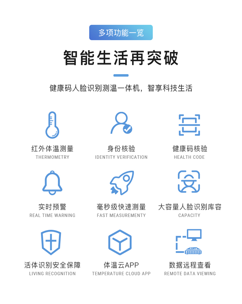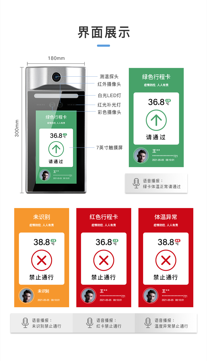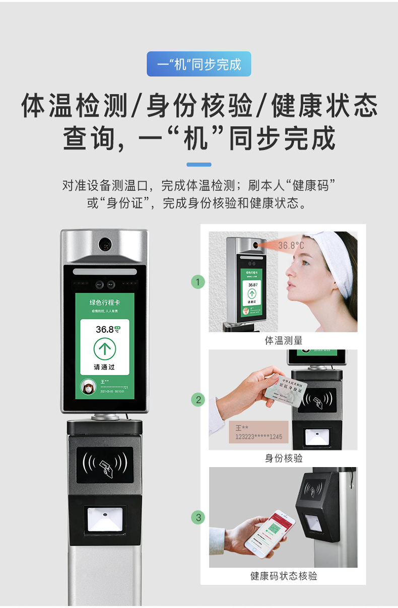 身份證/國康碼讀取智能核驗(yàn)終端 ·AI人臉識(shí)別測溫 ·插電聯(lián)網(wǎng)即用·遠(yuǎn)距離高精度測溫·身份證比對(duì) ·可組網(wǎng)和深度定制