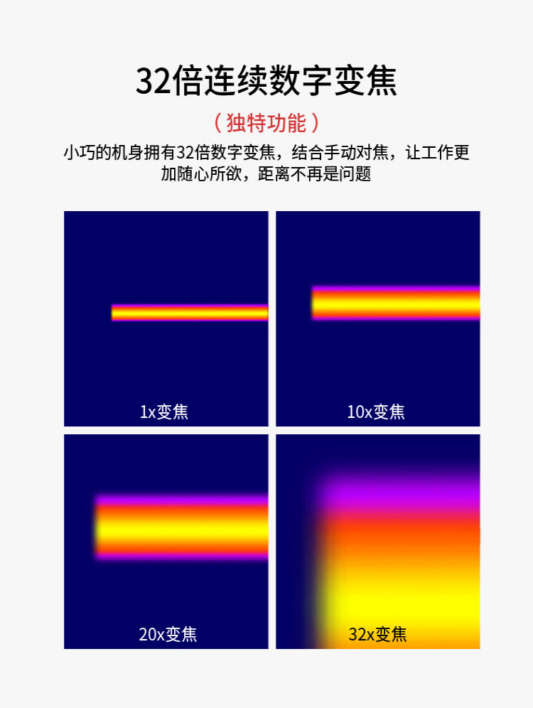 標(biāo)配鏡頭9mm,分辨率80×80,IFOV:3.77mard,視場(chǎng)角17×17°,熱靈敏度NETD<0.06℃,圖像幀頻50Hz,溫度范圍(-20-150、0-350),可見光分辨率500萬(wàn)像素