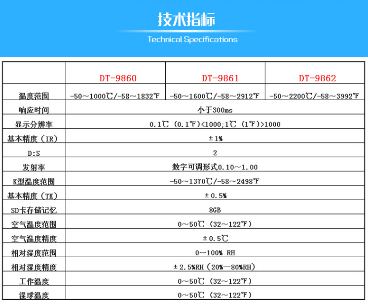 雙激光、溫度-50-1600、距離比50:1、可調(diào)0.10~1.0