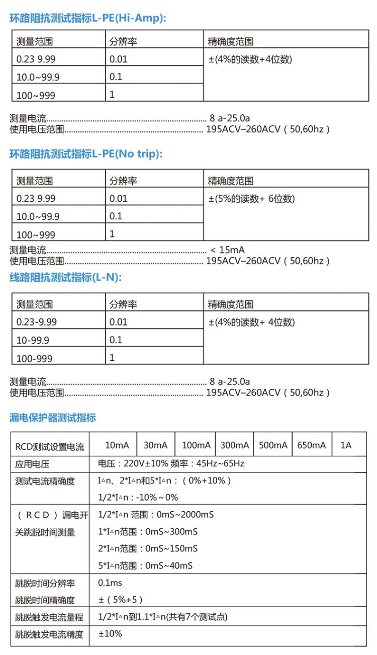 在L-N、L-PE、N-PE之間選擇測量
