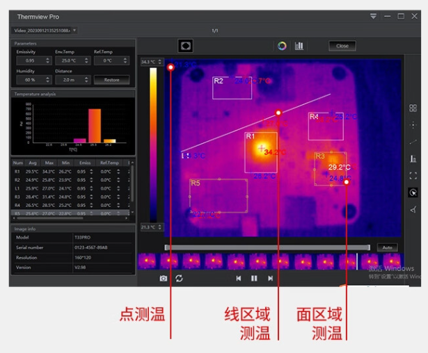 (華盛昌DT-979E手持式熱像儀-電腦端回放分析圖)
